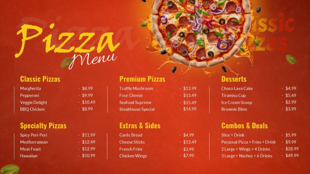 Free Pizza Menu Board Template – PPT, Google Slides & Canva